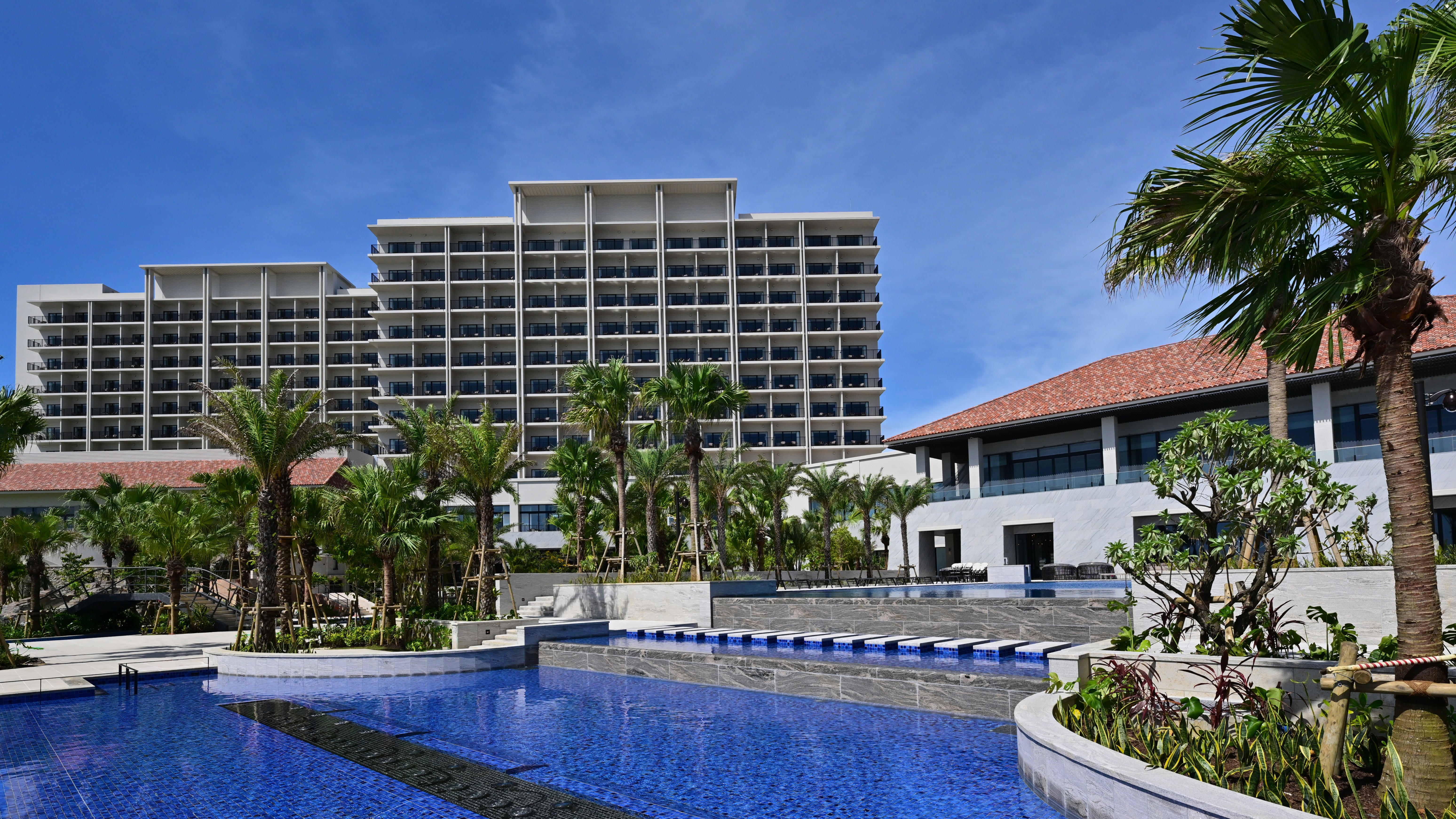 宿泊中は隣接するダブルツリーbyヒルトン沖縄北谷リゾートの2つの屋外プールやレストランなどの施設もご利用できるのも嬉しいポイント!